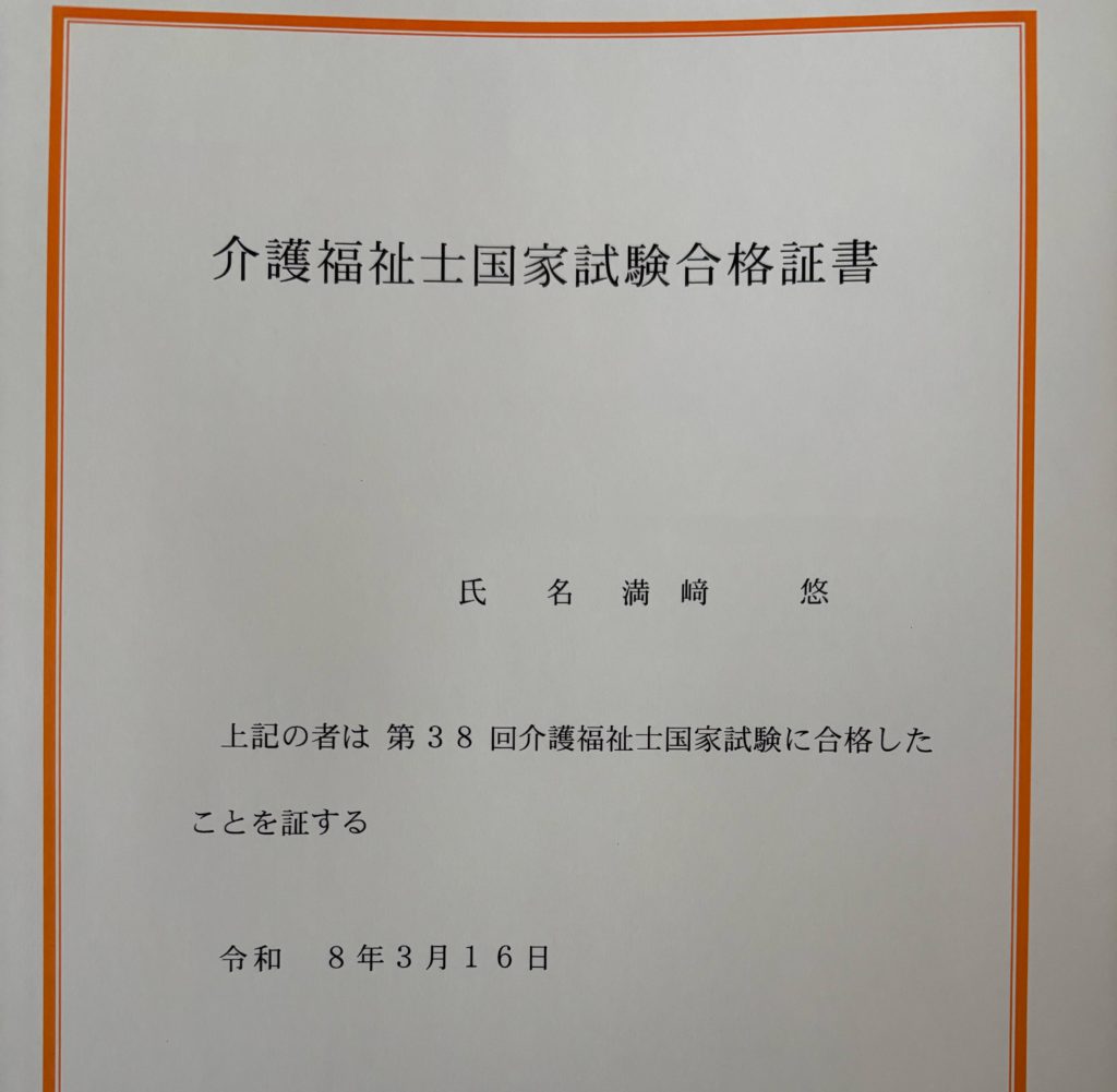 私事ですが、昨年末受けた介護福祉士の試験に合格しました㊗️
