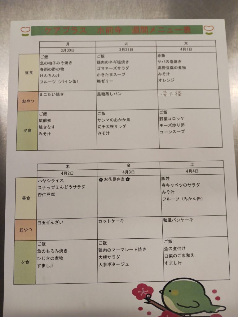 来週は、お花見弁当を予定しています🌸