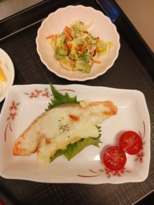 鮭のとろろマヨ焼き・塩昆布和え