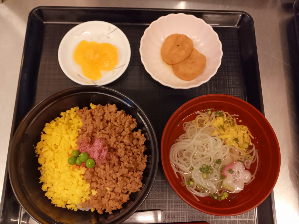 そぼろ丼・がんもの煮物・そうめん汁