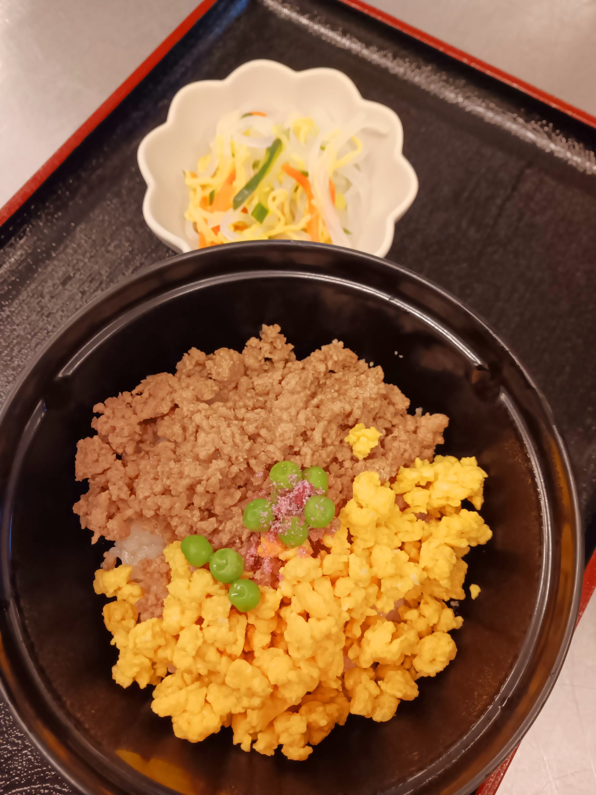 そぼろ丼・マロニーの酢の物
